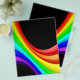 Eine farbenfrohe Flyer-Vorlage mit einem 3D gekrümmten Regenbogen oder Spektralmotiv. Die Rückseite des Flyers hat ein Spiegelbild der Vorderseite. Viel Platz zum Hinzufügen von Text und anderen Grafiken. Geeignet für eine Vielzahl von Anwendungen.