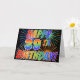 Die Vorderseite dieses lustigen, auffälligen und aufregenden Grußkartendesigns zeigt ein farbenfrohes, gefeiertes Feuerwerk mit inspiriertem Muster, zusammen mit der Meldung "HAPPY 39TH BIRTHDAY!" mit einem farbenfrohen Regenbogenmuster auf schwarzem Hintergrund. Im Inneren befindet sich eine benutzerdefinierte Begrüßungsnachricht, oder Sie können vielleicht gelöscht und leer verlassen werden, wenn es gewünscht wird, eine Nachricht von Hand zu schreiben. Eine solche Grußkarte könnte eine glückliche, lustige Art sein, jemandes 39. Geburtstag zu feiern. [~Z0000355]