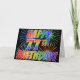 Die Vorderseite dieses lebendigen, spannenden und lustigen Grußkartendesigns zeigt ein farbenfrohes, gefeiertes Feuerwerk mit inspiriertem Muster, zusammen mit der Meldung "HAPPY 77 TH BIRTHDAY!" mit einem farbenfrohen Regenbogenmuster auf schwarzem Hintergrund. Im Inneren befindet sich eine anpassbare Grußmeldung, oder man kann vielleicht gelöscht und links werden, wenn man eine Nachricht von Hand schreiben möchte. Eine solche Grußkarte könnte eine glückliche, lustige Art sein, jemandes 77. Geburtstag zu würdigen. [~Z0000355]