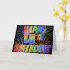 Die Vorderseite dieses lebendigen, aufregenden und auffälligen Grußkartendesigns ist mit einem farbenfrohen, feierlichen Feuerwerk inspiriert, zusammen mit der Meldung "HAPPY 15. BIRTHDAY!" mit einem farbenfrohen Regenbogenmuster auf schwarzem Hintergrund. Im Inneren befindet sich eine individuelle Begrüßungsnachricht, oder man kann sie löschen und leer verlassen werden, wenn man eine Nachricht von Hand schreiben möchte. Eine Grußkarte wie diese könnte Spaß machen, jemanden zu schicken, der seinen fünfzehnten Geburtstag feiert. [~Z0000355]
