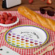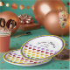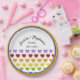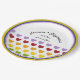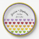 Fügen Sie Ihrem besonderen Tag eine farbenfrohe Touch mit diesen lustigen Papier-Tellern mit einem Vintagen inspirierten Muster von Regenbogenherzen mit Regenbogenstreifen-Akzenten und Ihrem eigenen Namen und Ihrer Hochzeit oder anderen Details hinzu.