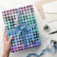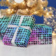 Ein digitaler Regenbogenverlauf, der sich aus der Dunkelheit reformiert. (Diese Version des Designs ist für jede einzelne Wiederholung mit einer Größe von 18 Zoll groß, um am besten in die Abmessungen des Packpapiers einzupassen.)