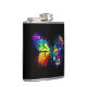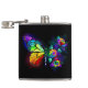 Regenbogen, leuchtend, künstlerisch bemalt Monarchen Schmetterling mit einem Bouquet aus glänzenden, hellen, leuchtenden Rose auf schwarzem Hintergrund. Regenbogenschmetterling.