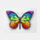 Realistischer Monarchschmetterling in allen Farben des Regenbogens auf einem weißen Hintergrund. Regenbogenschmetterling