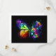 Regenbogen, leuchtend, künstlerisch bemalt Monarchen Schmetterling mit einem Bouquet aus glänzenden, hellen, leuchtenden Rose auf schwarzem Hintergrund. Regenbogenschmetterling.