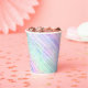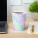 Die Pinselstriche mit Regenbogenstreifen sorgen für einen farbenfrohen Hintergrund, der für Kinder jeden Alters und für Künstler mit Soulen geeignet ist. Diese Version des Bechers weist die Farbstreifen auf einem weißen Hintergrund auf.