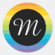 Regenbogenstreifen mit schwarzem Kreis M Monogramm Runder Aufkleber