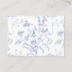 Regency Blue Vintag Chinoiserie Floral, Hochzeitsübernachtungskarten. Die Kartenvorlage stellt mehrere Textzeilen in einer Vorlage bereit, um die blaue Farbe für Ihre benutzerdefinierten Informationen zu koordinieren.
