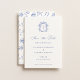 Regency Blue Monogram Wappen, Hochzeit speichern Sie die Datumskarte. Vintages inspiriertes Wappen im Barockstil mit Chinoiserie Garten Blumenmuster Backing.