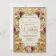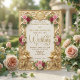 Versetzen Sie Ihre Gäste mit diesem vintage-inspirierten Design in ein königliches Märchen, das mit zarten rosa Blumen und einem luxuriösen falschen goldenen Filigranrahmen ausgestattet ist.