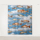 Ein surreales Kunstwerk von Fischen, die wie Regen aus dem Himmel fallen