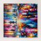 Unter schimmernden Lichtern der Stadt glitzern regendurchtränkte Straßen, während Regenschirme durch die Menge weben. Lachen, Chat und Reflexionen schaffen ein lebendiges, dynamisches urbanes Wandbild.