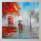 Regentag Herbst Roter Regenschirm Gemälde Poster