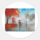 Regentag Herbst Roter Regenschirm Gemälde Runder Aufkleber