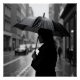 Schwarzweißfotografie. Junge Frau unter einem Regenschirm an einem Regentag