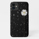 Weiße Daisy mit Regentropfen auf schwarzem Hintergrund.