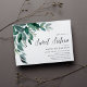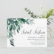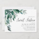 Zu den süßen botanischen Einladungen für elegante 16 . Geburtstag-Feiern zählen die Aquarellfarben Eukalyptus-Blätter und die grün-blättrige Kaskade aus der oberen links Ecke. Passen Sie Ihre 16 . Geburtstag-Daten an, die rechts ausgerichtet sind und mit einem schicken Kalligrafiebeschreiben verziert sind. Die Einladungen kehren in feste Waldgrün um.