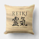 Feiern Sie die uralte japanische Heilkunst mit diesem exotischen Kissen, das die eleganten kalligraphischen Schriftzeichen für Reiki enthält, die auf wechselnden Sand auf beiden Seiten gestylt sind. Design © W.H. Sim. Weitere Informationen unter zazzle.com/expressionsoccasions
