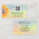 Diese farbenfrohe Reiki Master Visitenkarte ist mit einer gelben Sonnenblume und farbenfrohen Aquarellfarben dekoriert. Einfach anpassbar mit Ihren Daten und QR Code. Ändern Sie mithilfe des Entwurfstools die Textgröße, den Stil oder die Farbe. Weil wir unsere Kunstwerke erstellen, werden Sie dieses exakte Bild von anderen Designern nicht finden. Original Wasserfarbe © Michele Davies.