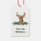 Hier ist ein lustiges Geschenkschild, das Kindern und Erwachsenen gefallen wird. Es zeigt ein Aquarellbild eines Rentiers mit einem kräftigen roten und grünen Schal. Das Rentier wird von einem grünen Holiday-Kranz gerahmt. Ihr benutzerdefinierter Text ist unten grün. Bild und Text werden auf einem weißen Hintergrund platziert. Die Rückseite des Tags hat ein zweites Bild des Rentiers mit Baumschmuck auf seinen Geweihen. Niedlich, und Sie können den Text sagen lassen, was Sie wollen! Schauen Sie sich die passenden Aufkleber und andere Weihnachtsthemen in unserem Shop an.