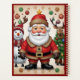 Ein festliches Design mit Schneemann, Weihnachtsmann, Reh und einem dekorierten Weihnachtsbaum, Set vor einem goldenen, gepunkteten blumigen Hintergrund, das Wärme und Urlaubsmagie hervorruft. "Das Originalbild wurde von Meta AI erstellt. AI generierte Kunstwerke. Lizenziert unter CC BY-SA 4.0."