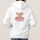 Ein verspielter Weihnachtsrentier, der über dem Schild "Frohe Weihnachten" pinkelt. Die Rentiere hat große, sanfte Augen mit roter Nase (ähnlich Rudolph) und weichem braunem Fell. Die Vorderseite des Rentiers hackt die Erholung am Rand des Schildes, als würde sie sich neugierig hinüber lehnen, um einen Blick zu werfen. Schneeflocken fallen sanft in den Hintergrund und die Briefe von "Frohe Weihnachten" geben der ganzen Szene ein fröhliches, winterliches Gefühl.
