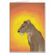 This is a digital painting of a lioness with a beautiful African sunset bed