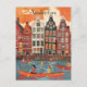 Diese Reise-Postkarte zeigt eine ruhige und warme Abbildung der Amsterdamer Kanäle und Skyline. Es ist eine großartige und romantische Postkarte für Reisende, die Amsterdam besuchen wollen oder für diejenigen, die Amsterdam bereisen und eine Postkarte an ihre Familie oder Freunde schicken.