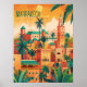 Dieses Reiseplakat zeigt eine ruhige und warme Abbildung der Skyline von Marrakesch. Es ist ein großartiges orientalisches Plakat für Reisende, die Marrakesch besuchen wollen, oder für diejenigen, die Marrakesch bereist haben.