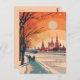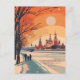 Diese Reisepostkarte zeigt eine ruhige und warme Abbildung, die das Moskauer Stadtbild darstellt. Hinter einem weitläufigen schneebedeckten Park erheben sich historische Sehenswürdigkeiten. Es ist eine großartige Postkarte für Reisende, die Moskau besuchen wollen, oder für diejenigen, die Moskau bereisten und eine Postkarte an ihre Familie oder Freunde schicken.