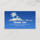 Reisehimmel-Geschäftskarte für Reise-Agentagentur mit blauem Himmel und Traum bewölken sich, Flugzeug, Palme, Strandkonzept.