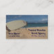 Foto eines Surfbrettes auf einem Sandstrand Ozean Große Visitenkarte für einen Agent oder eine Reiseagentur.