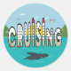 Im Kreuzfahrtstil wird das Wort "Kreuzfahrt" verwendet, um ein Kreuzfahrtschiff zu schaffen, das zu exotischen ausländischen Reisezielen über die blaue See fährt. Umfasst Sonne, Anker, Dampfkanäle und Kabinenportholen, um eine lustige Grafik für die Fans von Kreuzfahrten zu schaffen.