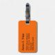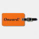 Gepäckanhänger mit "Onward!", Name und Anschrift auf orangefarbenem Hintergrund. Personalisieren Sie Ihre Namen- und Adressinformationen mithilfe der einfachen Vorlagen. Schriftart, Schriftart, Schriftart und orangefarbene Hintergrundfarbe sind anpassbar. Ideal für Reisende.
