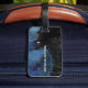 Cooles und stilvolles Design, um Ihre Reisetaschen zu identifizieren... personalisiert mit Ihrem eigenen Namen und Initialen... blaue Weltkarte auf schwarzem Hintergrund mit gealtertem Effekt.
