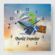 Reisende aus aller Welt, verpackt und einsatzberei Quadratische Wanduhr