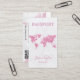 Reisebüro Glitzer Gold World Map Boarding Pass Visitenkarte mit rosa Hintergrund für Makeup Künstler, lash Verlängerung, Eventplaner, Reise-Agent, Friseur, Nagelkünstler