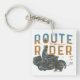 Ein lebendiges und dynamisches Design mit dem Text "Route Rider" in einem kühlen, mehrfarbigen Schriftart mit Motorradgrafik.