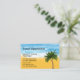 Reisespezialisten für tropische Visitenkarten mit dem Ozean und Palmen im Hintergrund und einfache, organisierte Layout für den Reiseveranstalter, der Reisepläne für Kunden in der ganzen Welt bucht.