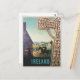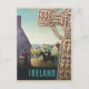 Die irische Szene, die von einem alten Reiseplakat modifiziert wurde, zeigt ein Dorf, ein Kreuz und Menschen, die sich gegenseitig zuwinken. Klassische Retrokunst in Vintagen Farben.