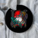 Im Nachhinein würde ich eher den Button mit Magnet bestellen... damit dieser bei jeder Kleidung angebracht werden kann. Sehr gute Bildqualität