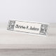 Dieser Schreibtisch oder die hängende Namensschild ist weiß mit einer Schwarz-Weiß-Abbildung der kleinen roten Motorhaube, die den Wolf im Wald in einem extravaganten schwarzen Rahmen an jedem Ende trifft. Passen Sie Ihren Namen mit der Vorlage an.