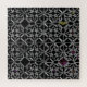 Un motif complexe de croix et de cercles gris qui s'entrelacent sur un arrière - plan noir avec juste un soupçon de couleur.