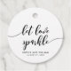 Gastgeschenk Hochzeit Tags mit den Worten "Lass Liebe Sparkle" in einem entspannenden kursiven Skript in schwarz vor einem weißen Hintergrund. Personalisieren Sie es, indem Sie den Platzhalter-Text ersetzen. Für weitere Optionen, wie zum Beispiel den Schriftart zu ändern und ihn zu vergrößern oder zu verändern, klicken Sie auf den Button "Anpassen". *Bitte beachten Sie, dass das Zazzle-Wasserzeichen, das in der Zoomvorschau angezeigt wird, NICHT auf dem gedruckten Endprodukt erscheint. © Rosewood and Citrus