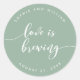 Hochzeitsaufkleber mit den Worten "Liebe ist Brewing" in einem entspannenden kursiven Skript in Weiß vor einer bearbeitbaren Hintergrundfarbe (klicken Sie auf Anpassen, um darauf zuzugreifen). Personalisieren Sie es, indem Sie den Platzhalter-Text ersetzen. Für weitere Optionen, wie zum Beispiel den Schriftart zu ändern und ihn zu verändern, erweitern Sie die /Contract-Kurve oder den Abstand zwischen den Buchstaben, klicken Sie auf die Schaltfläche "Anpassen". *Bitte beachten Sie, dass das Zazzle-Wasserzeichen, das in der Zoomvorschau angezeigt wird, NICHT auf dem gedruckten Endprodukt erscheint. © Rosewood and Citrus