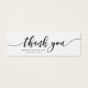 Cette mini carte élégante avec les mots "merci" en écriture noire fait une grande marque de faveur de mariage pour vos cadeaux de faveur de mariage. Laissez le côté arrière noir ou changez-le en blanc (cliquez sur personnaliser). Il est facile de personnaliser ; il suffit de remplacer le texte de l'espace réservé pour ajouter vos propres informations. Pour plus d'options comme changer la police, la taille du texte ou l'espacement entre les lettres, cliquez sur le bouton "Personnaliser". *Veuillez noter que le filigrane Zazzle qui apparaît dans l'aperçu du zoom n'apparaîtra PAS sur le produit imprimé final. © Bois de rose et agrumes