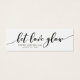 Diese stilvolle Mini-Karte mit den Worten "lass Liebe Glühen" in schwarzen Skript macht eine großartige Gastgeschenk Hochzeit Tag, die Sie tun können, um ein Loch zu schlagen. Die Rückseite schwarz verlassen oder in Weiß geändert (klicken Sie auf Anpassen). Es ist einfach zu personalisieren; ersetzen Sie einfach den Platzhalter-Text, um Ihre eigenen Informationen hinzuzufügen. Für weitere Optionen, wie zum Beispiel den Schriftart, die Textgröße oder den Abstand zwischen den Buchstaben zu ändern, klicken Sie auf die Schaltfläche "Anpassen". *Bitte beachten Sie, dass das Zazzle-Wasserzeichen, das in der Zoomvorschau angezeigt wird, NICHT auf dem gedruckten Endprodukt erscheint. © Rosewood and Citrus