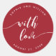 Gastgeschenk Hochzeit Aufkleber mit den Worten "mit Liebe" in einem entspannenden kursiven Skript in Weiß vor einer bearbeitbaren Hintergrundfarbe (klicken Sie auf Anpassen, um Zugriff zu erhalten). Personalisieren Sie es, indem Sie den Platzhalter-Text ersetzen. Für weitere Optionen, wie zum Beispiel den Schriftart zu ändern und ihn zu verändern, erweitern Sie die /Contract-Kurve oder den Abstand zwischen den Buchstaben, klicken Sie auf die Schaltfläche "Anpassen". *Bitte beachten Sie, dass das Zazzle-Wasserzeichen, das in der Zoomvorschau angezeigt wird, NICHT auf dem gedruckten Endprodukt erscheint. © Rosewood and Citrus