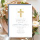 Religiöse Cross Dusty Blue Script Boy Taufe Einladung