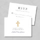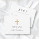 Personalisierte Religious Cross Navy Blue Boy First Communion RSVP Card. Teil der Religious Cross Navy Blue Boy First Communion Collection Suite mit passender Einladung, Schreibwaren und erstem Communion Party Zubehör.